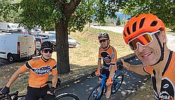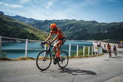 Hors catégorie, celé to je dneska o tom. Před závodem mám projeté oba HC kopce, La Plagne je v pohodě, sama o sobě, jenže co to dělá těžký je Col du Pré. Mám z toho strach a celá strategie je postavená na tom, tenhle kopec přejet dobře, v pohodě a s rezervou i ve vedru. První cíl tedy byl přijet sem červej. To se podařilo, další věc je, je to kopec na hodinu. Žádný riskování s jedním bidonem, dva jsou poctivě vypitý, zatím sice nebylo vedro, tak jsem se trochu nutil, ale vedro bude. Nic nepodcenit. Beru vodu na polejvání a džus na kopec, protože nemám vyzkoušeny zdejší patoky.