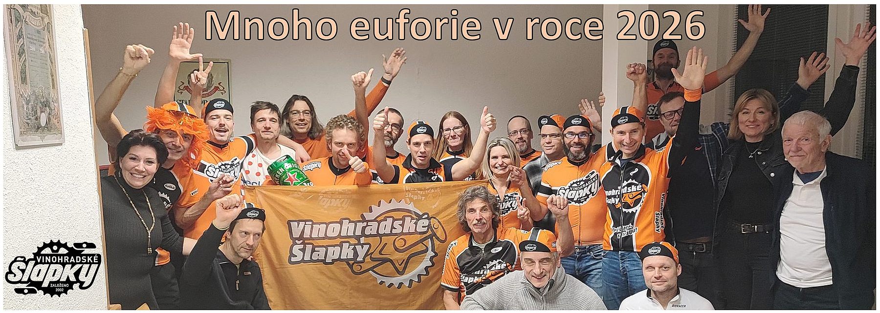 Obrázek k aktualitě Tradice neporušena! V pátek 05.12.2025 se konala "Valná hromada a vyhlášení Šlapky 2025". Letošní oranžová čepičková show obohatila vyhlášení 23. ročníku týmové soutěže. Na nejvyšším bodě v Praze tleskalo 22 párů dlaní Šlapce roku! Přivítejme na trůnu krále Luka, který našlapal krásných 20 235 km, zúčastnil se 32 závodů a stál na 3 bednách! Díky všem, co dorazili a postarali se o důstojné vyhlášení!